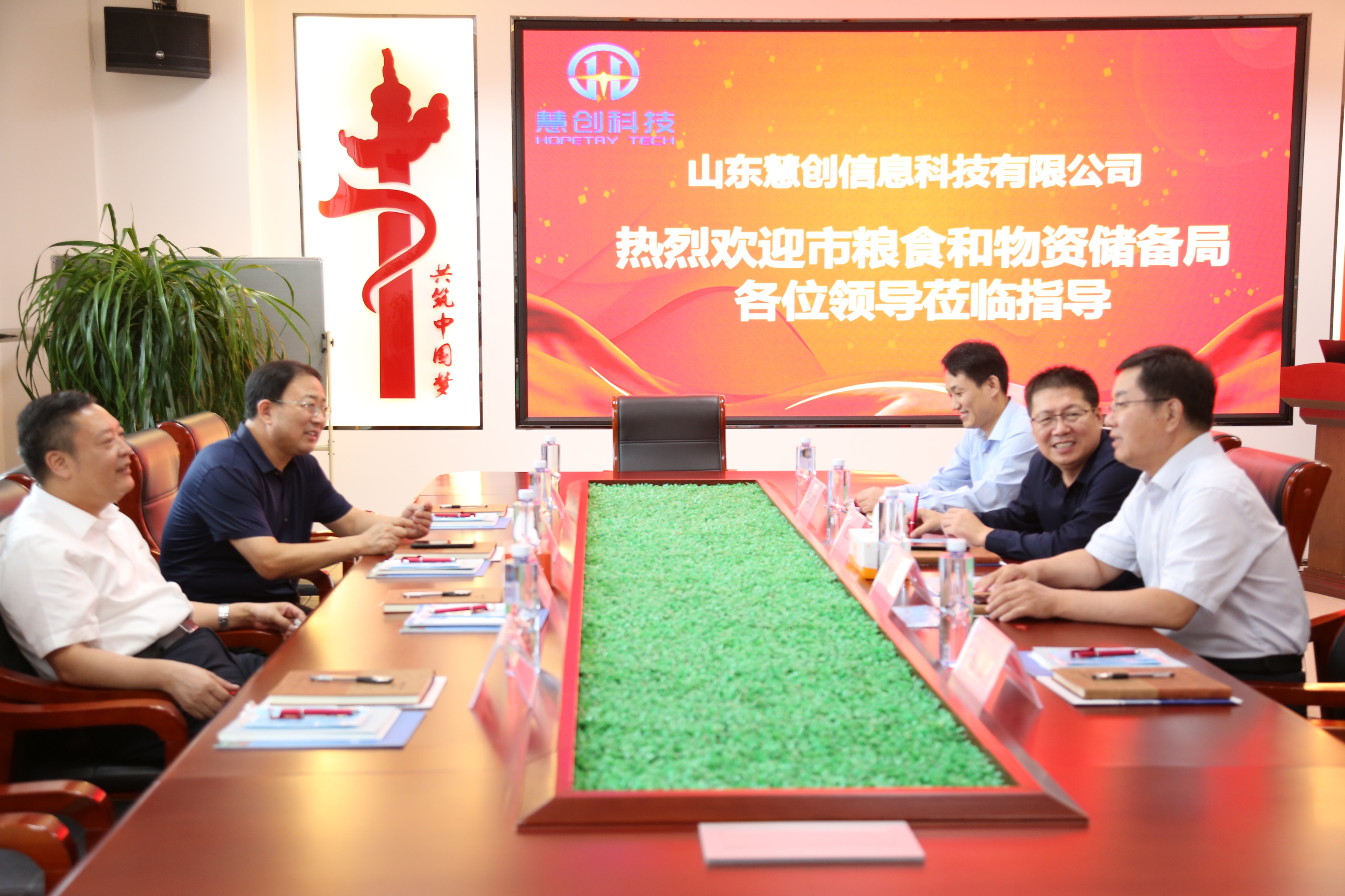 2022年9月27日,臨沂市糧食和物資儲備局黨組書記、局長宋成明;黨組成員、副局長徐景亮及相關領導同志到我司山東慧創(chuàng)信息科技有限公司指導黨建工作。臨沂人才工作集團黨支部書記、總經(jīng)理高玉彬、市派紅領書記范寶杰等領導同志陪同。座談會上,臨沂人才工作集團黨支部書記、總經(jīng)理高玉彬就人才集團發(fā)展情況及園區(qū)黨建工作作出詳細解說。 山東慧創(chuàng)信息科技有限公司董事長王立寶就企業(yè)業(yè)務、企業(yè)黨建、企業(yè)